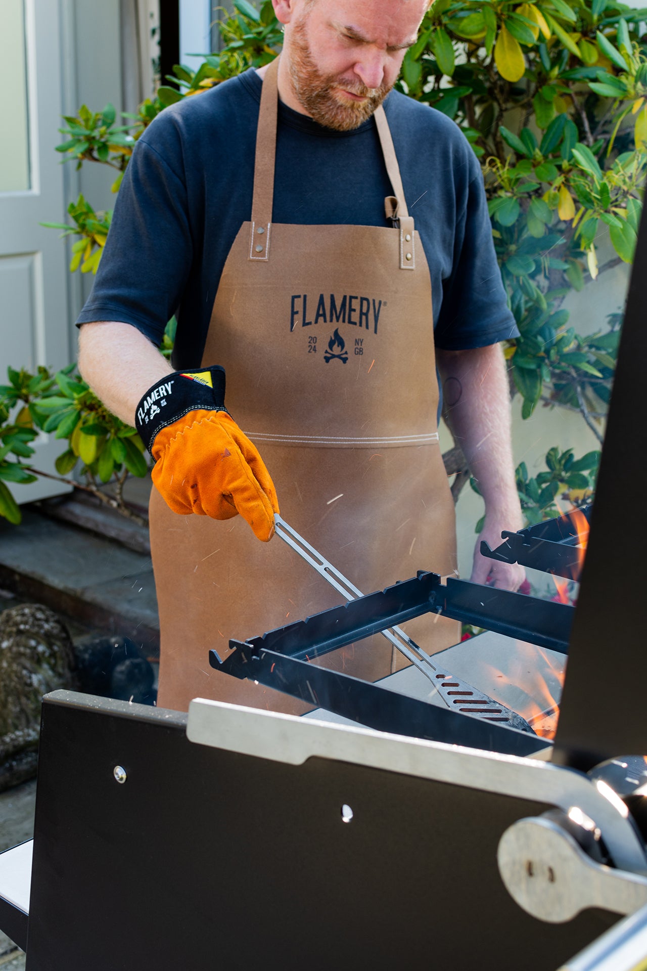 The Flamery Heat Resistant BBQ Gloves are crafted from split cowhide and lined with a cotton fleece lining, ensuring your hands are protected from the high temperatures of your grill. With the Flamery logo prominently displayed, they combine safety and style, making them an essential accessory for any live fire grilling enthusiast.
