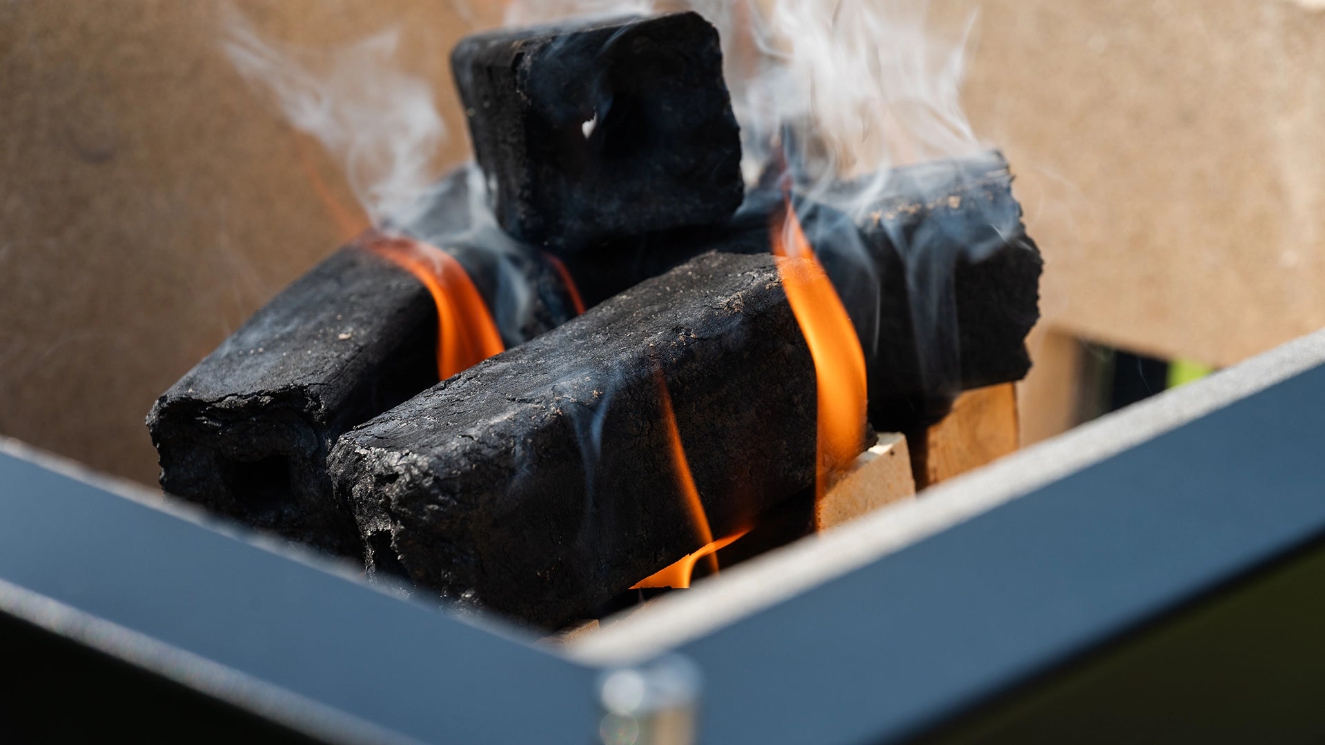 For the best results, we recommend using Binchotan or high-quality lump charcoal. Start by placing a few natural firelighters in a chimney starter and fill it with your charcoal. Light the firelighters and let the charcoal burn until it’s fully ashed over and glowing hot (about 15–20 minutes).